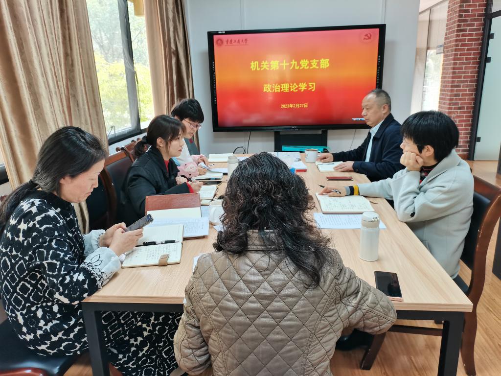 2月27日下午,校工会在怡园会议室开展学习活动,深入学习党的二十大精神和全国总工会十七届七次会议精神,研究落实学校第四次党代会精神,布置今年工会工作。常务副主席段远鹏主持会议。